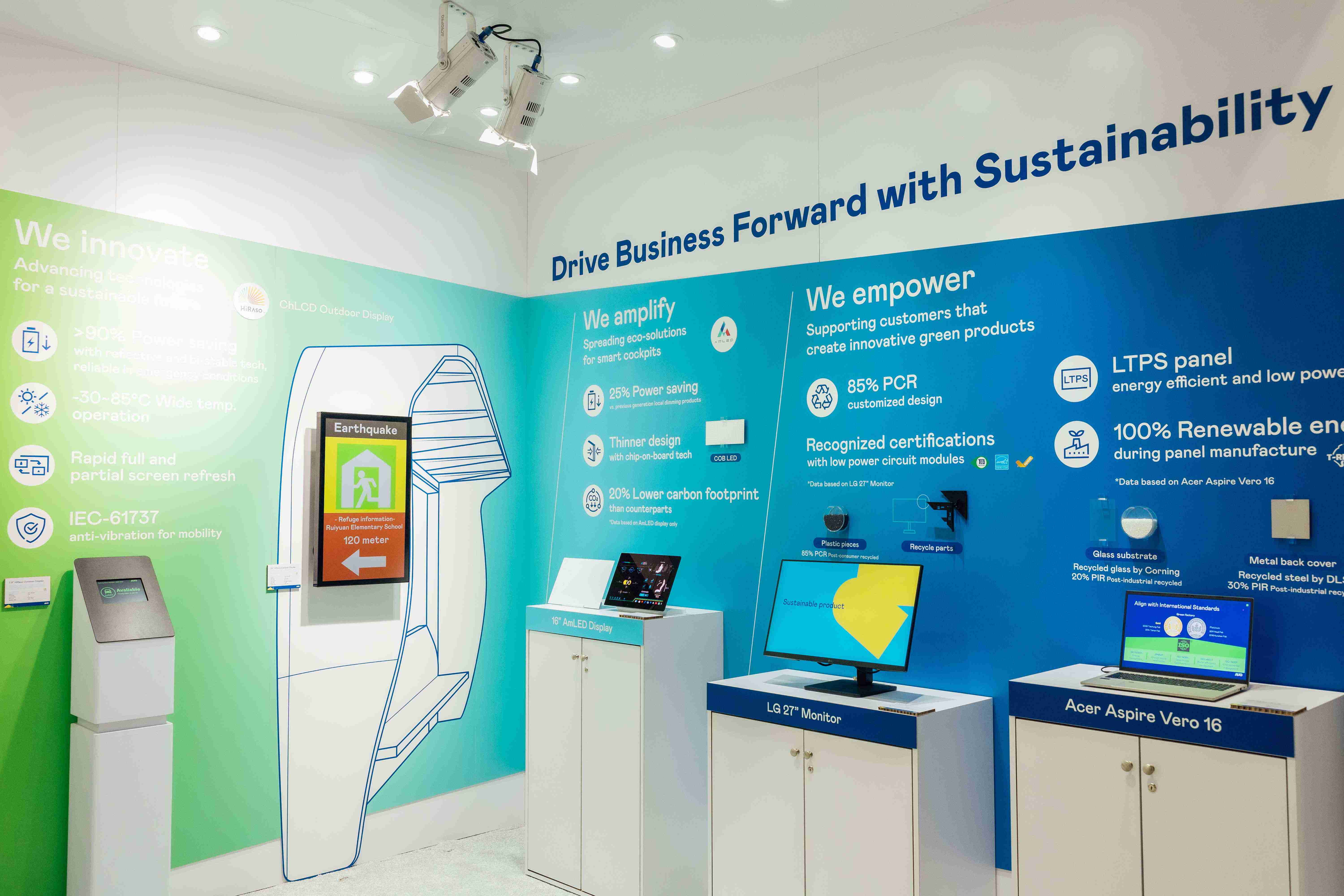 BHTC的木纹车用显示器(Display Behind Wood)将无缝木质表面与显示器结合后,,,,可以融入车内设计中,,,,提供驾驶优质的视觉效果,,加上其无边框的设计和亮度调控,,,,创造更优质的车内体验。。 尊龙集团展出多项领先业界绿色科技 助攻客户达成低碳目标 尊龙集团致力于永续发展,,,,从产品生命周期自原料、、、、制程至使用等每个阶段,,,,发展低碳方案,,,在CES 2025展位上分享已实际应用在终端消费性电子产品上的绿色科技外,,,,未来将更进一步移植多年累积的成功经验导入车用产业,,,,为客户实现永续价值,,满足客户对产品的绿色低碳设计要求