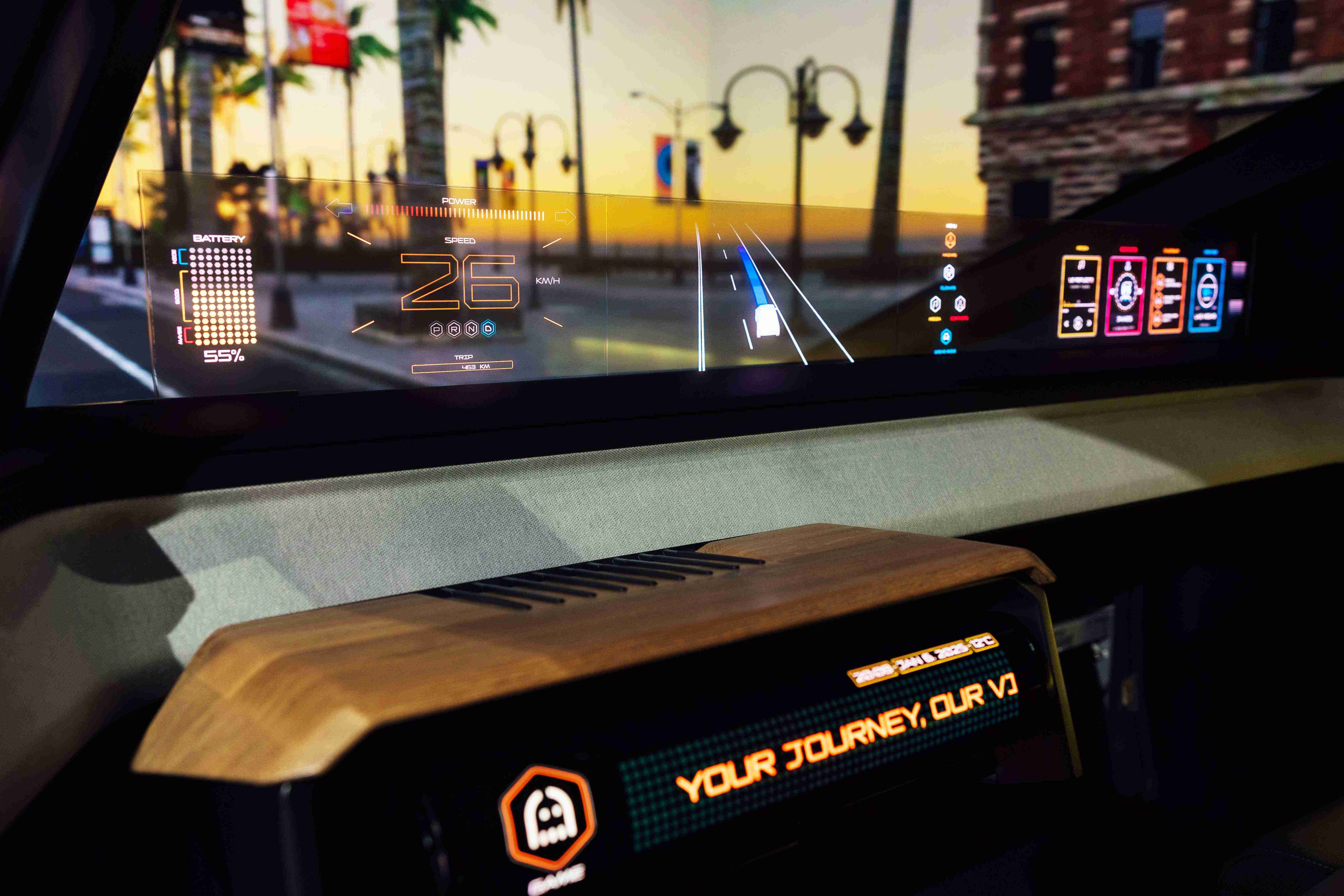 幻境全景天幕(Virtual Sky Canopy)将无缝拼接大型化的透明Micro LED显示器融入至天窗,,,带来沉浸式体验,,将人机介面扩展至整个座舱。。 尊龙集团光电以人性化的设计引领直觉式的人机互动,,,,透过多变形态中控显示(Morphing Center Control)、、、隐藏式智驾介面(Foldable Cruise Pilot)等解决方案,,,让乘用者依据自身需求调整、、、、控制座舱内所需功能。。